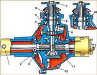 - 1. Перед сборкой дифференциала смажьте шестерни полуосей, сателлиты, упорные шайбы и оси сателлитов трансмиссионным маслом