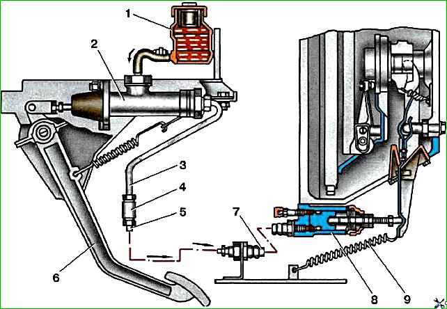 Гидропривод выключения сцепления автомобилей семейства УАЗ–3741 аналогичен и показан на рис. 2.