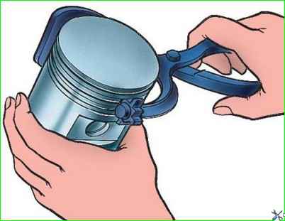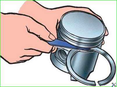 При замене только поршневых колец без замены поршней удаляйте нагар с днищ поршней, из кольцевых канавок в головке поршня и маслоотводящих отверстий, расположенных в канавках для маслосъемных колец.