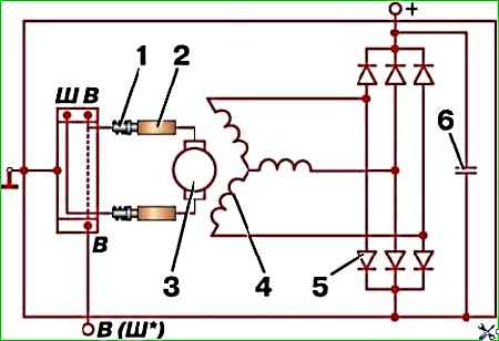 3. Не следует проверять работоспособность генератора «на искру» даже кратковременным соединением зажима «плюс» генератора с «массой».