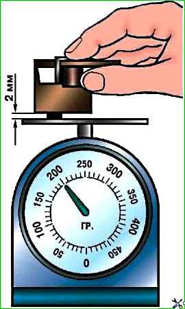 Когда щетка будет выступать из щеткодержателя на 2 мм, замерьте показание весов.