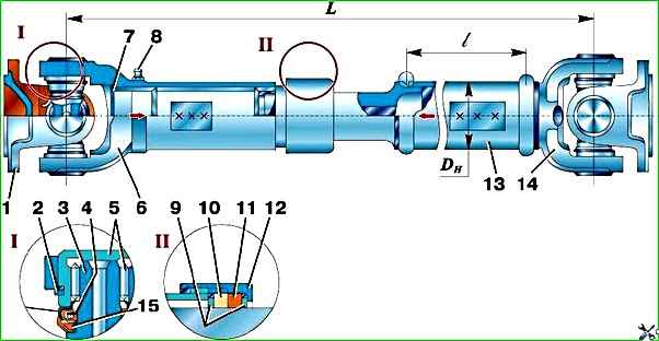 - 5. Замените изношенные детали шпилевого соединения карданного вала, если радиальный зазор в шлицах превышает 1,3–1,5 мм.