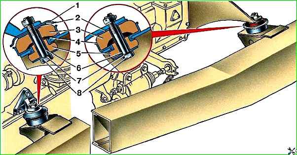 Периодически проверяйте затяжку гаек передней и задней подвесок двигателя.