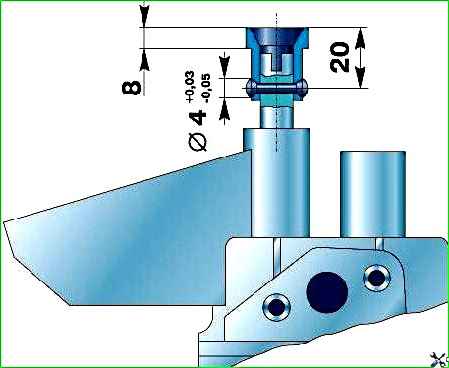 - 2. Высверлите в ведущем валике и во втулке отверстие диаметром 4 +0,03–0,05 мм, выдерживая размер (20 ± 0,25) мм.