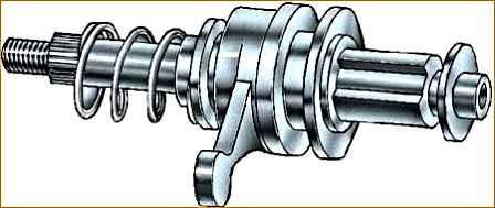 3. Установите на вал переключения муфту (рис. 7), упорную шайбу, упорную чашку пружины и пружину.
