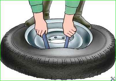 - – разборку и сборку шин в пути производите с применением специальных лопаток, имеющихся в комплекте водительского инструмента; в гаражных условиях