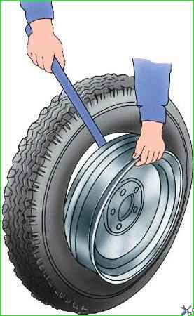 В случае прилипания покрышки к диску отделите ее борта с помощью домкрата, используя, например, массу автомобиля.