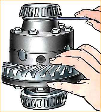 Прокладки переставляйте, не изменяя их количества, так как это нарушит натяг подшипников дифференциала.