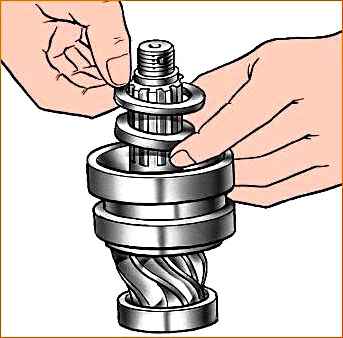 Сборку и регулировку подшипников ведущей шестерни производите в следующем порядке: