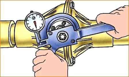 У собранного дифференциала шестерни полуосей должны проворачиваться с помощью шлицевой оправки от усилия не более 59 Н (6 кгс), приложенного на радиусе 80 мм.