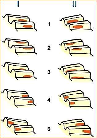На рис. 11 показаны типичные положения пятна контакта на зубьях ведомой шестерни и способы устранения неправильного контакта.