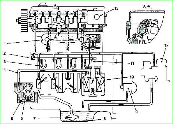 Схема системи мастила показана на малюнку