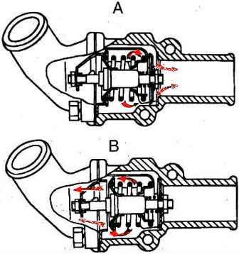 У холодну погоду, особливо при малих навантаженнях двигуна, майже все тепло відводиться внаслідок обдування двигуна холодним повітрям, і рідина, що охолоджує, через радіатор не циркулює.