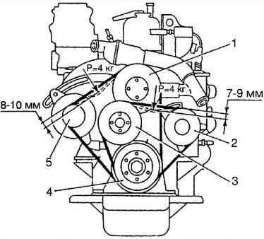 Шків насоса охолоджуючої рідини обертається разом зі шківом генератора одним клиновим ременем від шківа колінчастого валу.