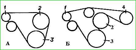 Встановлення ременя приводу вентилятора на автомобілі без гідропідсилювача керма показано на малюнку 1.