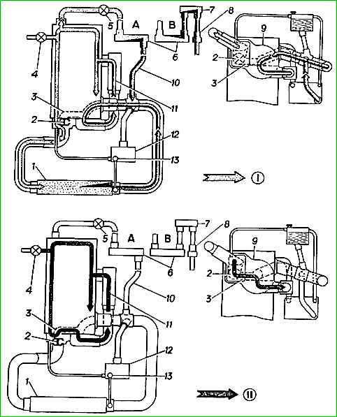 прогріти двигун до температури відкриття клапана термостата (до робочої температури рідини 85-95°, що відповідає середині зеленої зони шкали покажчика температури рідини).