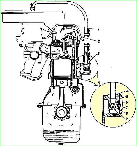 У цьому випадку необхідно провести промивання деталей регулятора розрідження та прочищення отвору 9.