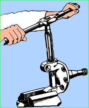 Ключом або головкою «на 17» відвертаємо гайку стопора шкворня.