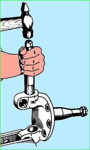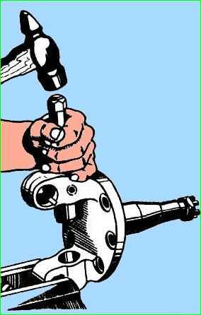 Оправкою з м'якого металу вибиваємо шворень у напрямку зверху донизу.
