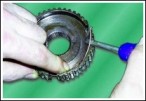 Перевірити наявність сумісних міток на ступиці та ковзній муфті синхронізатора і, якщо їх немає, промаркувати.
