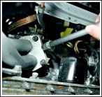 Двигун виймають з автомобіля нагору, попередньо знявши коробку передач