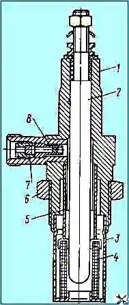 При надмірному тиску дизельного палива 73,6 кПа (0,75 кгс/см 2) та температурі 15-25°С пропускна здатність свічки повинна бути 5,5-6,5 см 3/хв.