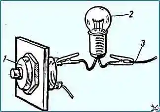 Кнопку ввімкнення ЕФУ перевіряють за допомогою контрольної лампи почерговим приєднанням її до висновків (рис. 4).