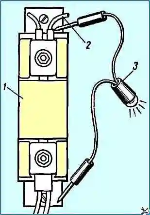 Потім перевіряють справність контактів реле, для чого приєднують лампу до виведення 17А (кнопка включення ЕФУ натиснута): лампа повинна горіти.