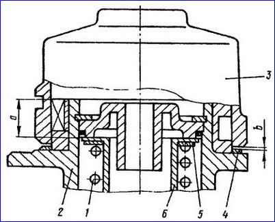 Вимірюємо зазор b між кришкою 3 та шайбою 4, який не повинен перевищувати 0,15 мм.