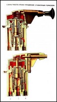Кран керування гальмом стоянки служить для керування пружиними енергоакумуляторами приводу стоянкового і запасного гальм (рис.1, а — в)