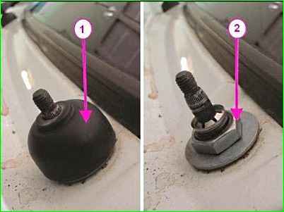 Зняти ковпачки 1 гайок, малюнок 3, кріплення осей важелів склоочисника до кузова, ключем на 24 відвернути гайки 2.