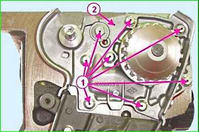 - - болт 1 (М8) кріплення водяного насоса 22 Нм (2,2 кгс.м);