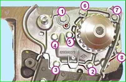 - - болти 2-8 (М6) кріплення водяного насоса 11 Нм (1,1 кгс.м).