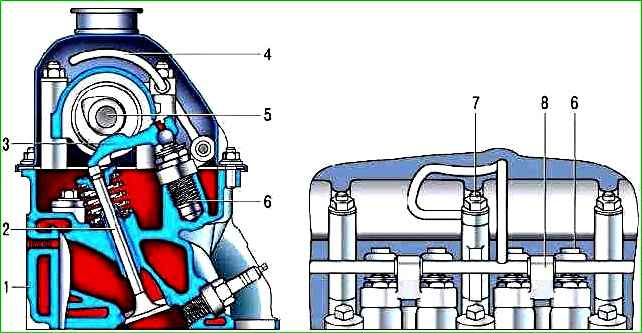 З лівого боку головки блоку циліндрів біля її нижньої площини відлитий номер кожного циліндра, а також порядок роботи циліндрів (1—3—4—2).