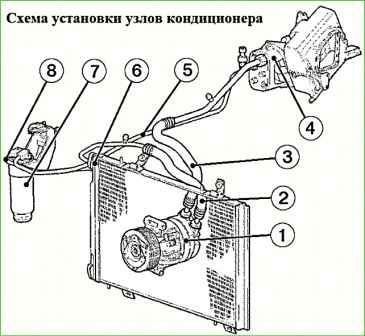 Для кращого обдування конденсатор встановлений перед радіатором системи охолодження.