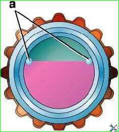 При підкачуванні палива за допомогою ручного приводу насоса рівень палива в камері поплавця карбюратора повинен установитися в межах, зазначених мітками (припливами) «а» (рис. 2) на стінках оглядового вікна.
