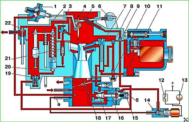 У разі виходу з ладу в дорозі електронного блоку 13 (див. рис. 1) або мікровимикача 12 з'єднайте одним із шлангів штуцери «а» і «б» карбюратора між собою, минаючи електромагнітний клапан.