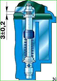 При відхиленні рівня від зазначених меж зробіть регулювання, для чого зніміть кришку камери поплавця.