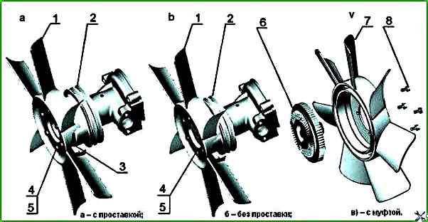 Відверніть болти 3 (Малюнок 3) кріплення проставки 2 з вентилятором 1 до шківа 7 (Малюнок 3) водяного насоса.