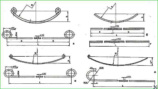 При виявленні тріщин і обломів у двох і більше листів ресор у передній підвіски і трьох і більше листів у ресор задньої підвіски ресору треба замінити повністю.