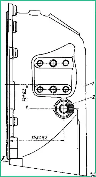 При износе втулок 2 (рис. 5) вала вилки выключения сцепления свыше диаметра 25,1 мм втулки заменить.