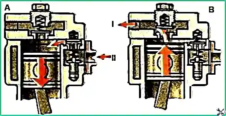 Воздух из воздушного фильтра двигателя поступает в цилиндры компрессора через пластинчатые впускные клапаны.
