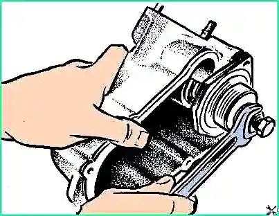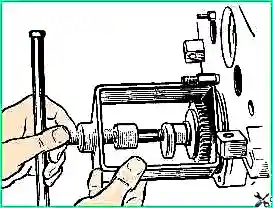 Для выполнения этой работы муфту грузов 7 (см. рис. 12), державку 6 в сборе с грузами подать в осевом направлении в сторону задней крышки 1.