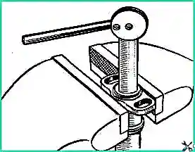 После установки калибра-приспособления упереть рычаг 9 в головку болта 5, рычаг 12 в рычаг 9; при этом державку 6 с муфтой 7 придвинуть к пяте 11 так, чтобы были зажаты: