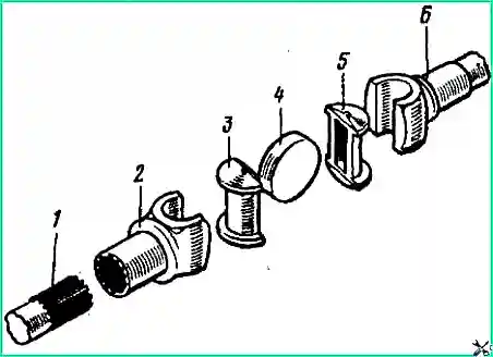 При разборке узла нельзя раскомплектовывать приработавшиеся детали шарнира. Кроме того, важно сохранить взаимное положение деталей шарнира.