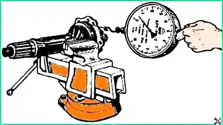 Установите индикаторное приспособление и определите зазор в подшипниках.