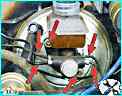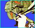 Специальным ключом на 10 отворачиваем штуцер тормозной трубки, удерживая нижний наконечник шланга за шестигранник ключом на 15