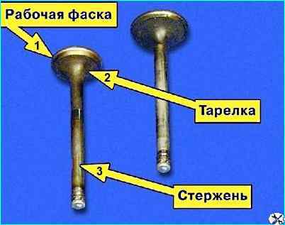 Замените клапаны со следующими дефектами: глубокие риски и царапины на рабочей фаске, трещины, деформация стержня клапана, коробление тарелки клапана, следы прогара.