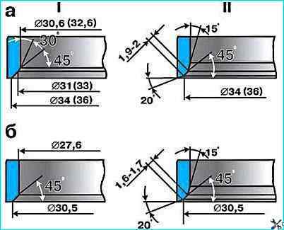 Сначала шлифуется фаска под углом 20˚, затем фаска под углом 45°.