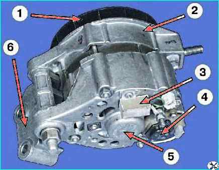 Снимать генератор надо вместе с кронштейном, так как вынуть болт крепления генератора к кронштейну мешает лонжерон кузова.